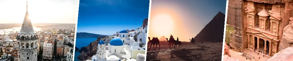 Istanbul - Cappadocia - Pamukkale - Ephesus - Kusadasi - Mykonos - Santorini - Athens - Cairo - Nile - Cruise - Amman - Jerash - Ajloun - Madaba - Nebo - Kerak - Petra - WadiRum - Dead - Sea